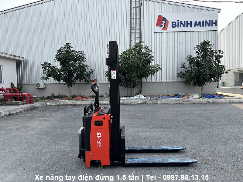 Xe nâng tay điện đứng 1.5 tấn là thiết bị cơ giới được sử dụng trong các nhà kho, nhà máy và trung tâm hậu cần để xử lý và vận chuyển hiệu quả các hàng hóa được xếp trên pallet. Nó thường kết hợp các ưu điểm của tính năng ngồi lái đứng với năng lượng điện, cho phép người vận hành di chuyển các tải nặng hơn với nỗ lực tối thiểu.